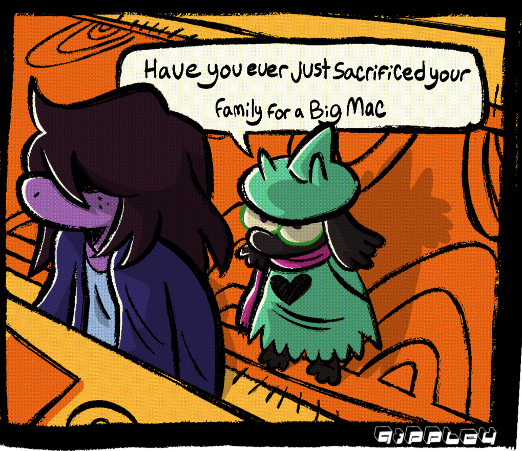 Hii me goomy! Like the pokemon. I've been a UTDR fan for nearly a decade now, and it's been a dream of mine for a while to host a Deltarune zine! I'm so excited for the new chapters I think I might throw up on the floor when they get announced! Follow me on twitter dot com!
